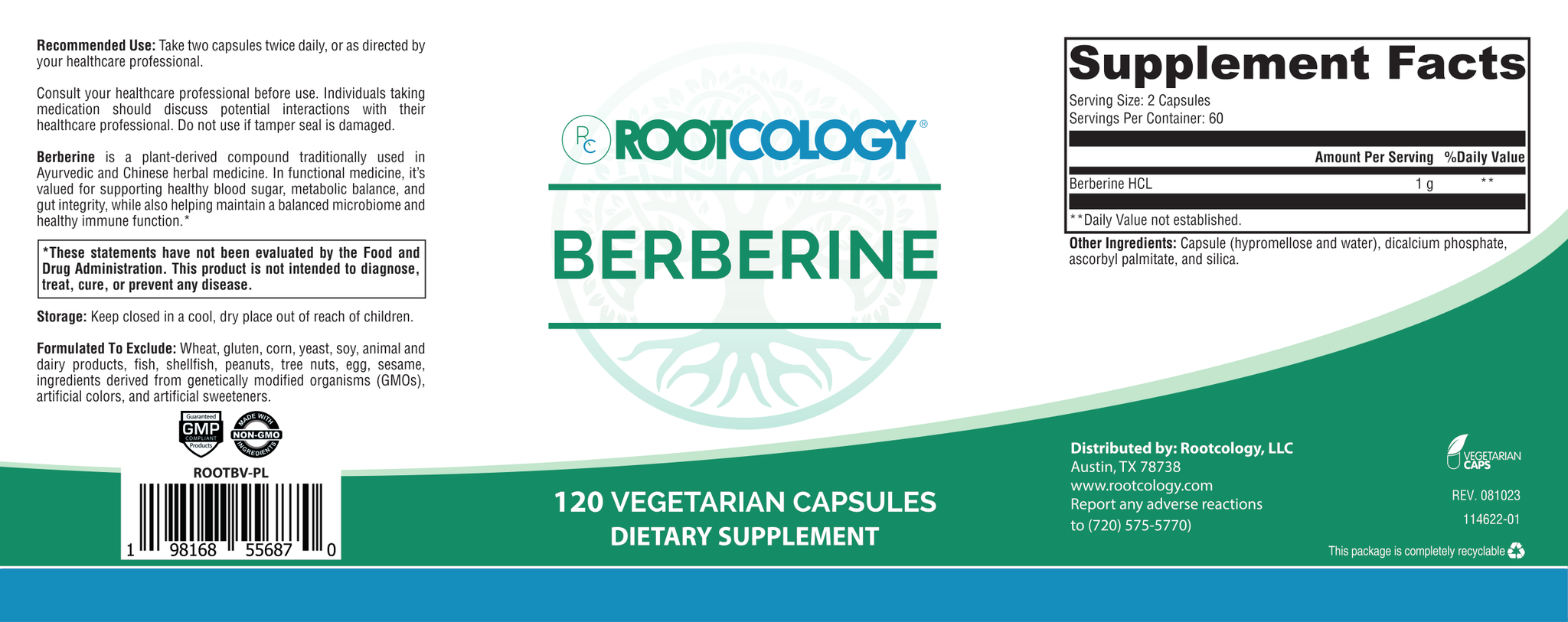 - Berberine - Berberine may support healthy blood sugar, help to maintain metabolic balance and a healthy weight, and support gut integrity, while also helping to maintain a balanced microbiome in the gastrointestinal tract and promote healthy immune function.* Rootcology’s Berberine is highly concentrated, delivering 500 mg of berberine HCl per capsule.
