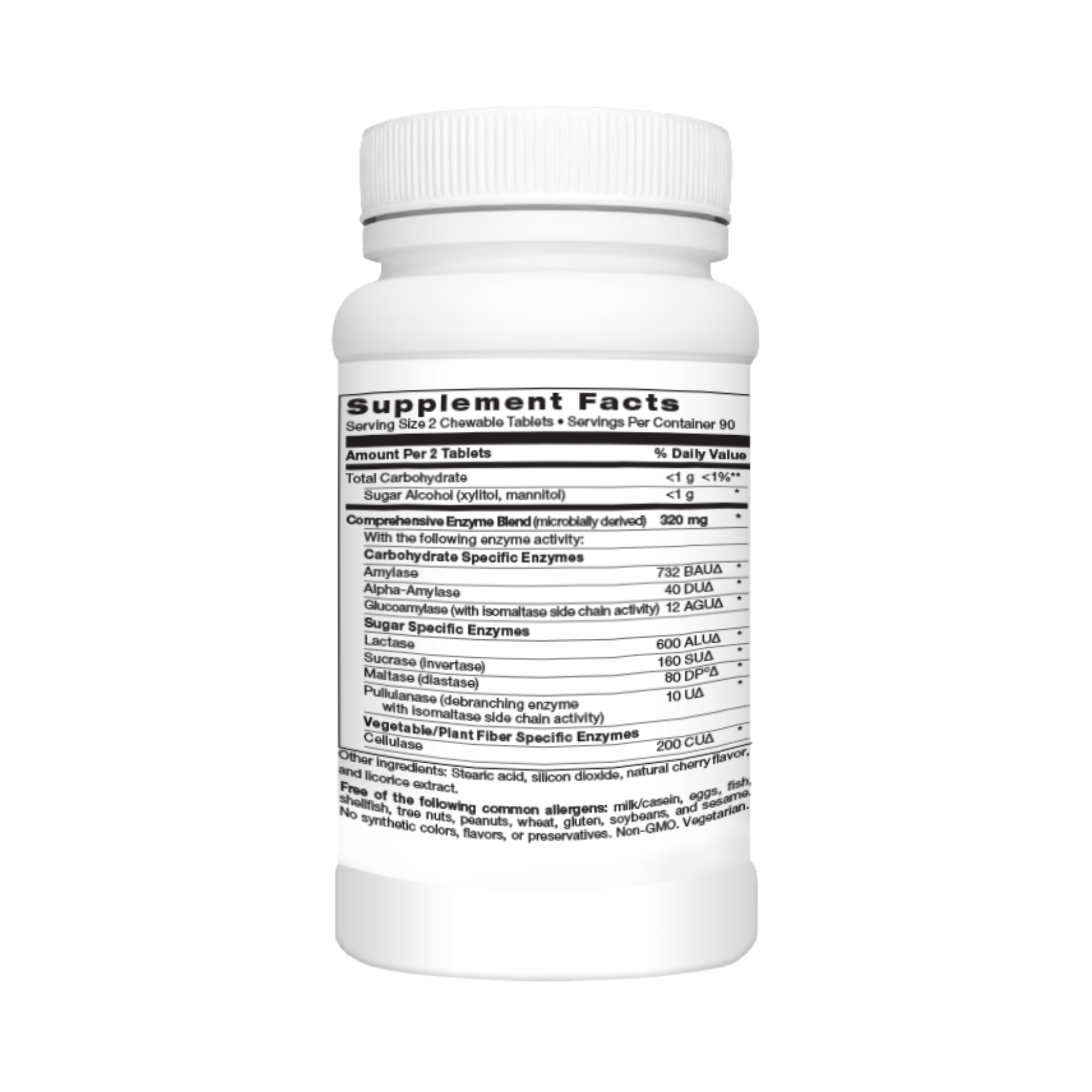 Broad Spectrum Enzymes is a complete digestive support formula in an easy-to-take chewable tablet. This blend contains a comprehensive array of enzymes that assist in the breakdown of proteins, peptides, fats, carbohydrates, sugars, and plant fibers, supporting healthy digestion, absorption, and utilization of nutrients, and promoting intestinal comfort.*