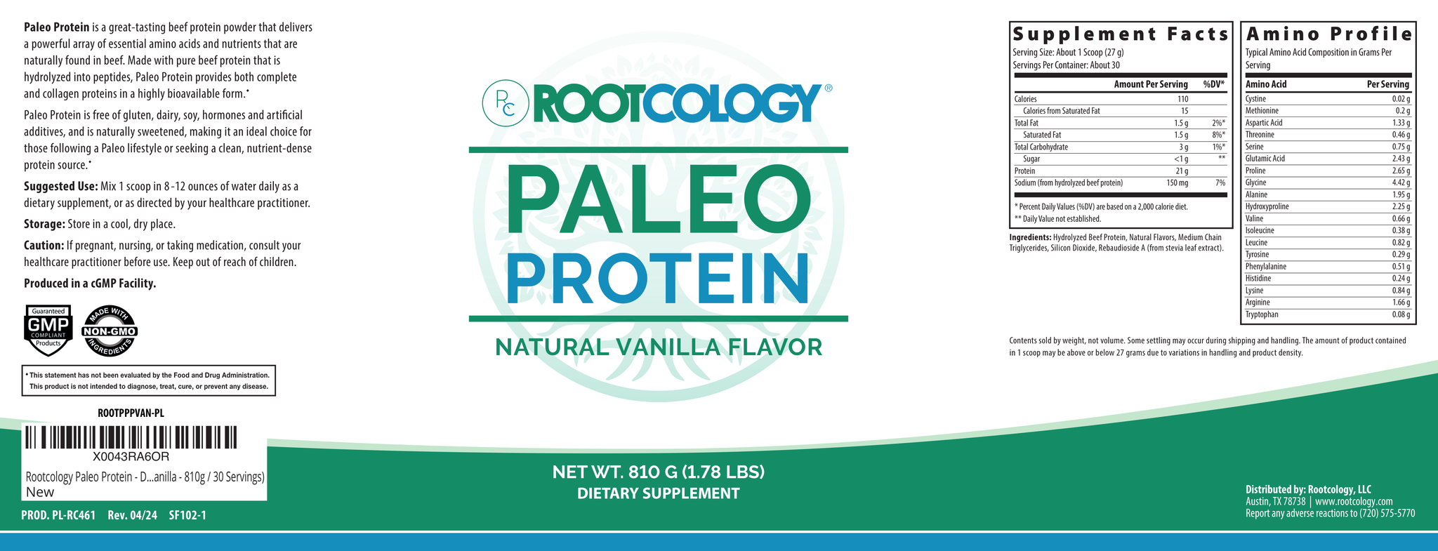 - Paleo Protein – Vanilla - A scrumptious vanilla-flavored version combining the same highly absorbable hydrolyzed beef protein with natural vanilla flavor. Sweetened with a hint of stevia and free of gluten, dairy, soy, hormones, and artificial additives, this is an ideal option for those seeking a clean yet tasty protein boost.*